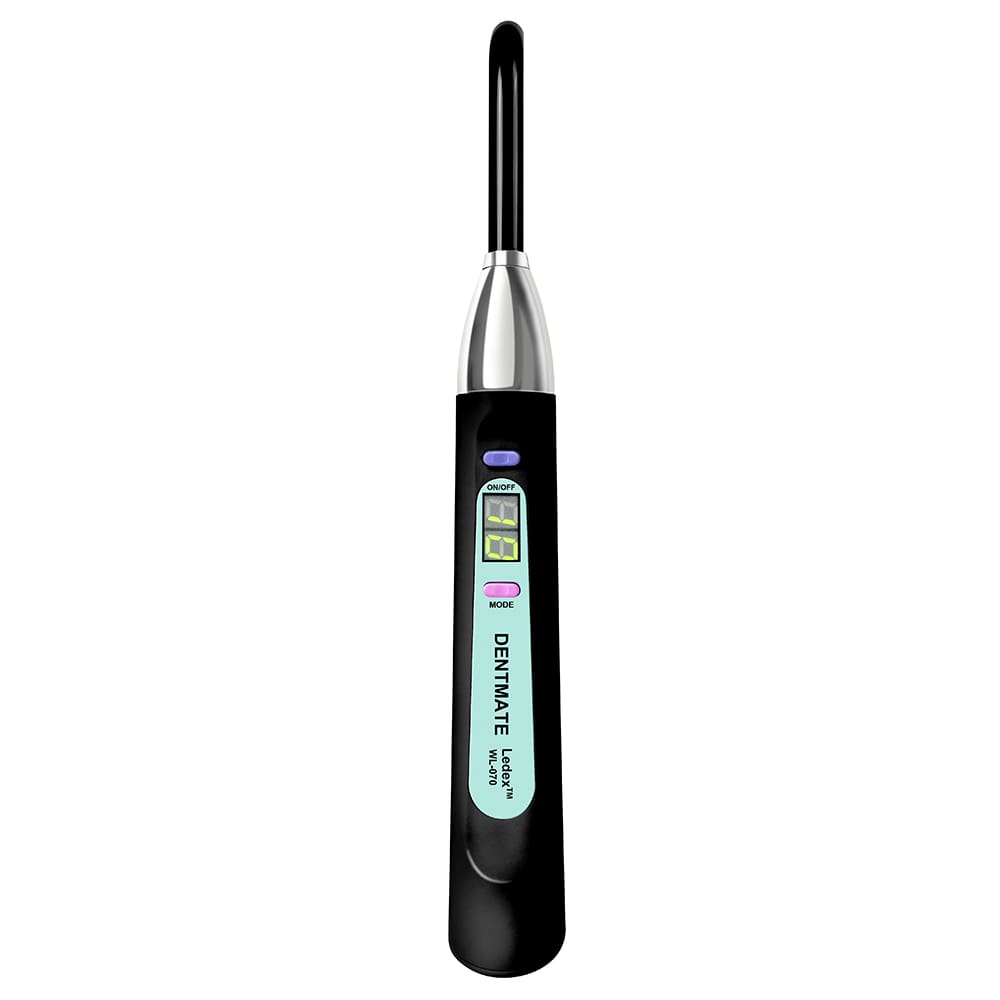 Product Description: Ledex Cordless LED Curing Light by Dentmate uses only the highest-grade materials and LED, assuring top quality, which ranks it among the best-known names in the industry. It has a simple to operate clear display, simple functions including ramp mode, and is very to use. 10 second fast cure using high power 5W LED light. It can cure composites over 3mm in 10 seconds. Never shuts down with continuous use. Built-in smart heat management system ensures the device will not over heat during continuous use. When the battery power is exhausted, you can plug in the power supply and continue to use the curing light as needed. Features: Small cordless LED curing light Color: Black 10 second fast cure Rechargeable Quantity: 1pk Color: Black