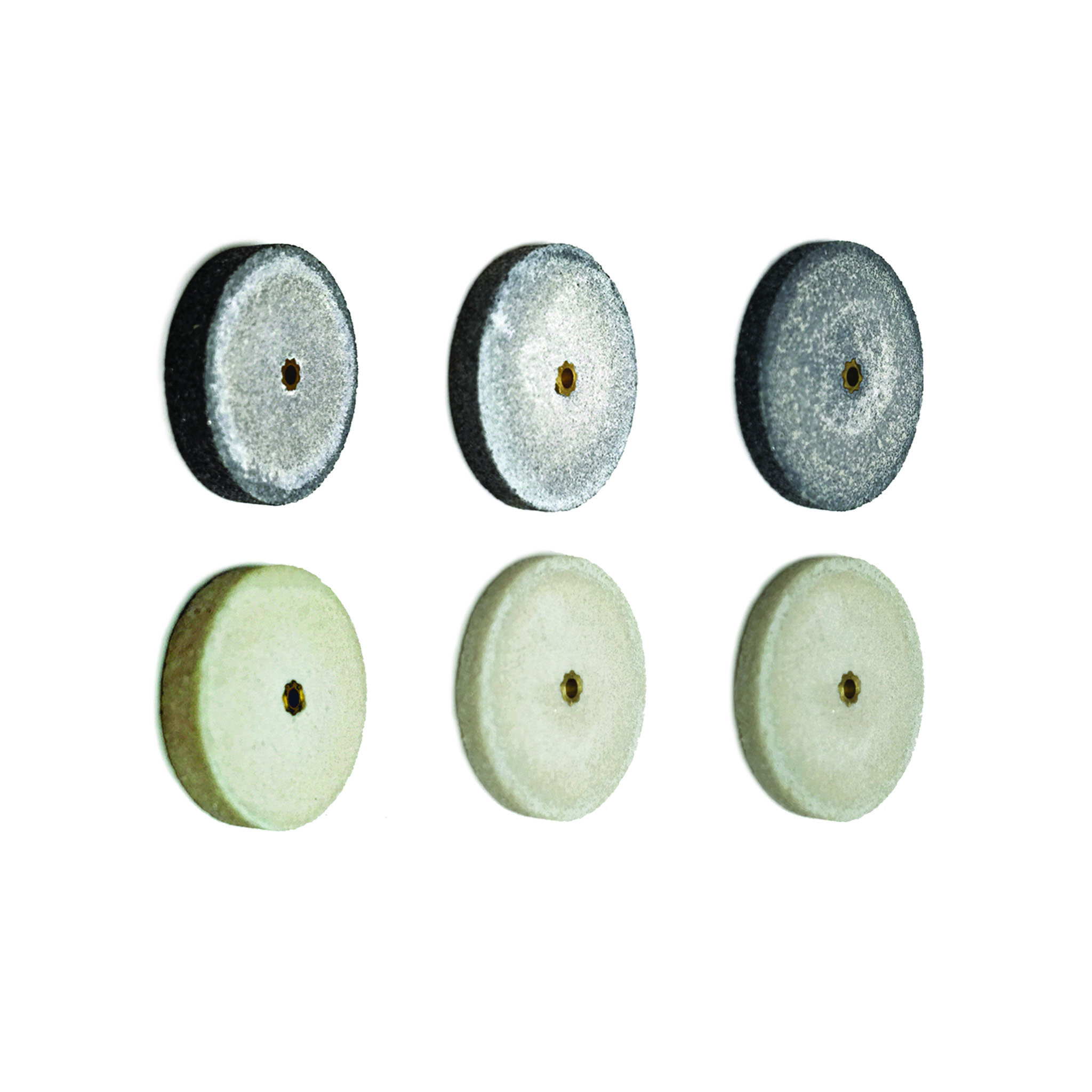 Product Description: Heatless unmounted grinding wheels. Gray: Silicon carbide. Rapid reduction, use for porcelain, acrylic, and non-precious metals. White: Aluminum oxide. Non contaminating, used for porcelain or precious metals. Features: Heatless unmounted grinding wheels Colors: Gray (Silicon Carbide), White (Aluminum Oxide) Package of 50 pc Quantity: 50pk