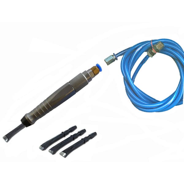 Product Description: Pneumatic chisel with 3 tips, designed for easy removal of plaster. Safe and simple operation. Connects directly to an air hose. Excellent stroke control, low noise. Includes 3 different shape tips. Made in Korea. Features: Pneumatic chisel for plaster removal Includes 3 different shape tips Quantity: 1pk