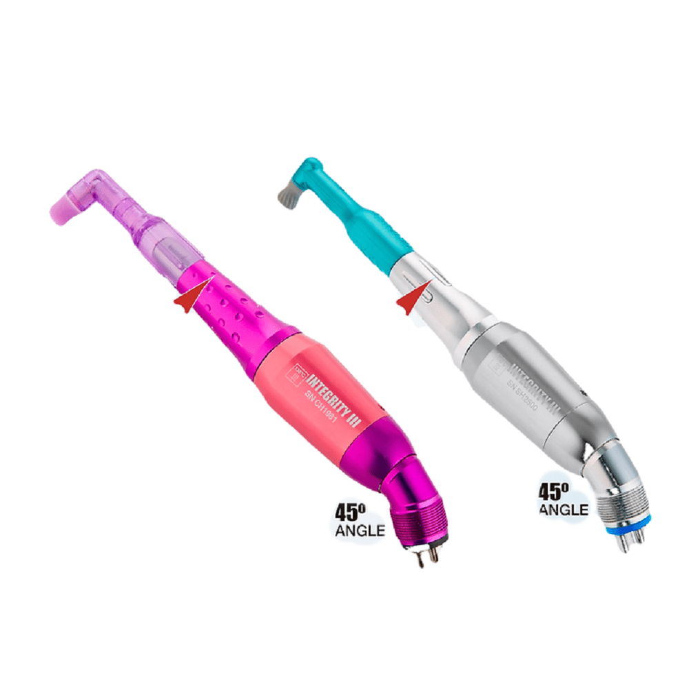 Product Description: The Integrity III Prophygiene handpiece is the most comfortable and ergonomic handpiece on the market, weighing only 2.4 oz. The 45′ connector reduces air tube drag. Ergonomic design provides perfect balance and optimal user comfort. The Integrity III offers smooth, vibration free operation with a maximum speed of 5000 rpm. Superior torque will overcome the toughest polishing challenges. 360 degree swivel for superb maneuvrability. Soft start-up speed prevents paste splatter. It has removable mini nose cones for easy maintenance and sterilization. Friction grip chucking mechanism, just push in or pull out the prophy head. The Integrity III can be connected directly to any 4-hole tubing, and is compatible with all standard disposable prophy angles. It is autoclavable up to 275F. Made in the USA. Features: Lightweight and ergonomic hygiene handpiece with 360 degree swivel and a 45 degree angle connector to reduce air tube drag Max speed: 5000 rpm FG shank for easy removal and addition of prophy heads Compatible with all standard disposable prophy angles; autoclavable up to 275F Weight: 2.4 oz Quantity: 1pk Size: 2.4oz