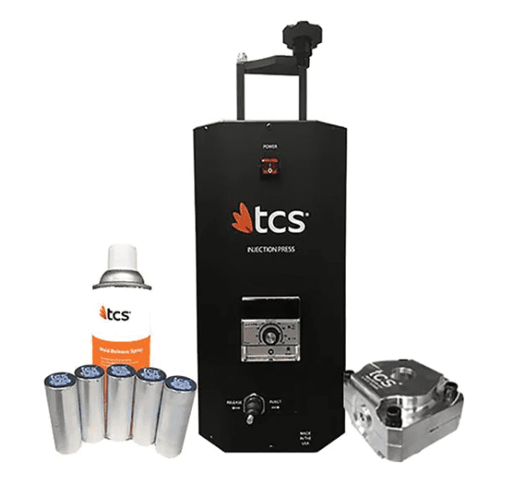 Product Description: The TCS Auto Air Injector with Built In Furnace is a compact all in one unit. It is used to melt TCS thermoplastic material and inject it into the flask. Injects cartridges with a 25mm diameter. Yields approximately 30 cases per day. Important: Melting time and temperature depends on furnace type and calibration. Kit contains: 3 x TCS resin cartridges, 2 x injection flasks, 10 x pc palage wax, 10 x pc lingual wax, 10 x pc sprue wax, 3 x 9.5 sprue wax, 1 x carving knife, 1 x TCS cement, 1 x Sample size EZ Flow, 1 x Mold Release spray, 1 x TCS fusing liquid, 1 x Hot Air Welder, twist drill samples, TCS putty (400g), 1 x Econo Cutter, 1 x Econo Mandrel, 1 x white knock down wheel & chuck, 1 x Rubberized Abrasive 304, 1 x Rubberized Abrasive 306, 10 x pink griding wheels, 10 x brown rubber wheels, 5 x green mounted stones, 2 x large rubber points, 2 x small rubber points, 2 x mini fuzz balls, 1 x pink zirconia coarse bur, Polycril (1lb package), 1 x Turbo Buff, 4 x rag buffs, sample polishing paste pieces Features: Yields approximately 30 cases per day Weight 40 lbs; Dimensions: 8x23x13.5in 110V; Requires minimum of 135 psi 1 Year warranty Made in the USA Quantity: 1pk