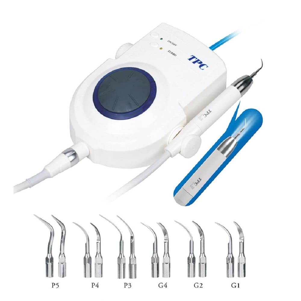 Product Description: The TPIC Advance 750 LED Piezo Scaler comes with all standard scaler features, ergonomic design, and attractive aesthetics. A compact unit housing is perfect for easy placement anywhere in the operatory. Intense LED light source for optimal visibility. The Advance 750 is extremely gentle on patient, and causes little or no sensitivity. No heat build up in handpiece with extended use. The handpiece is autoclavable. The Advance 750 has an extensive power range, which allows the widest choice of clinical applications. FIne water spray eliminates excessive overspray onto patient. Thin sublingual tips are available, and 5 tips are included with the unit. Features: Advanced and convenient Piezzo scaler with LED lights Extremely gentle on patient, causes little or no sensitivity Input rating: 115/230V, 50/60 Hz; Frequency: 32 KHz; Water pressure: 1-4 kg/cm2 Fuses: 230V, 2 per unit; F0.5A 250V-CQ-S500; 110V, 1 per unit, F1A 5A 250V-CQ-S500 Size: 160x155x70mm; Weight: 2.1 kg Quantity: 1pk Size: 160x155x70 mm Color: White