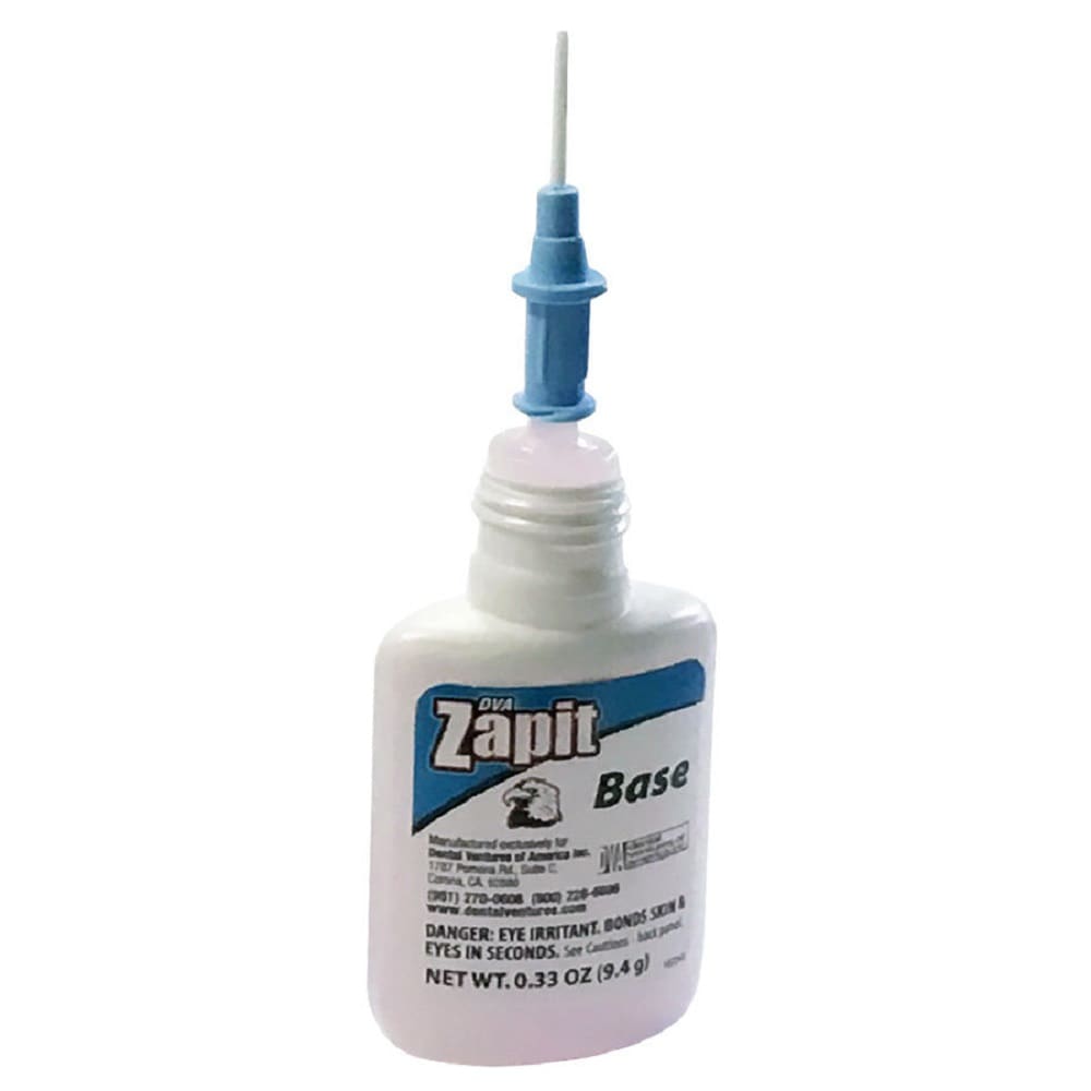 Product Description: Zapit consists of a special cyanoacrylate material of base and accelerator that allows a controlled setting time. It can be manipulated, arved, and shaped into an appropriate designed and then hardened by sparying with a slight amount of accelerator. Excellent for filling air bubbles, basing up, and eliminating undercuts on dies. Many other useful applications. This listing for base only; accelerator sold separately. Features: Cyanoacrylate with controlled setting time Base only Color: Pink Size: 0.33oz Quantity: 1pk Size: 0.33oz Color: PInk